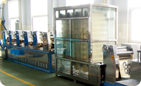 有自己的實力生產車間,引進目前國內先進的新1000型全自動全封閉掛面和面葉生產線,其特點是從和面﹑壓面﹑切條全部為不銹鋼生產設備,變頻調速,自動化程度高、穩定性好