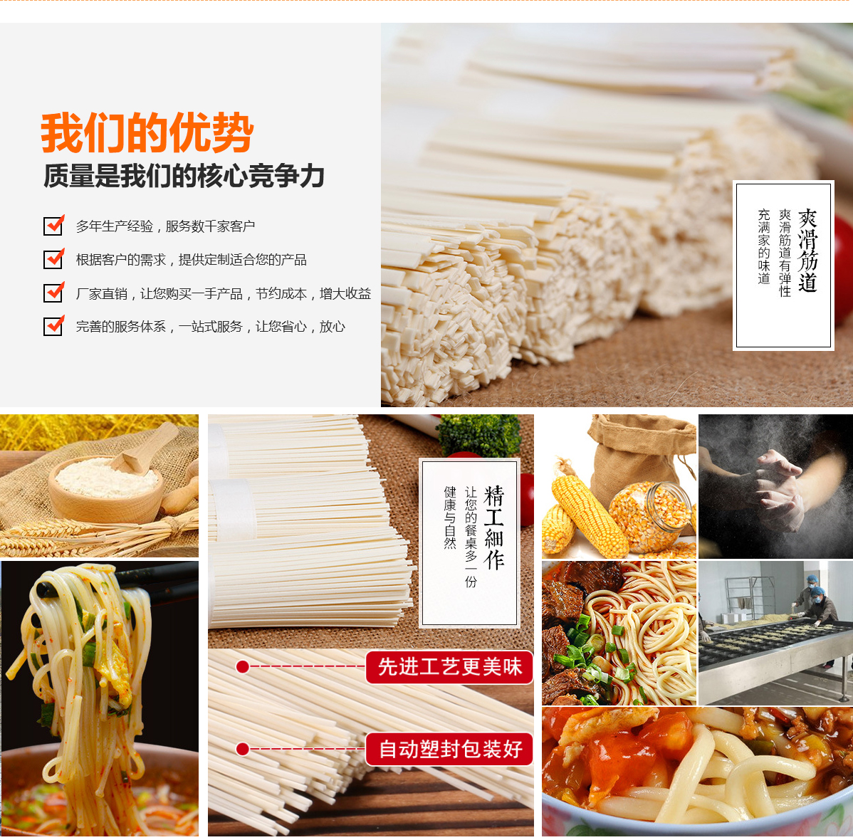 挑選好優質的材料進行加工制作,保持面條本身的質量及口感,帶給客戶永定的產品